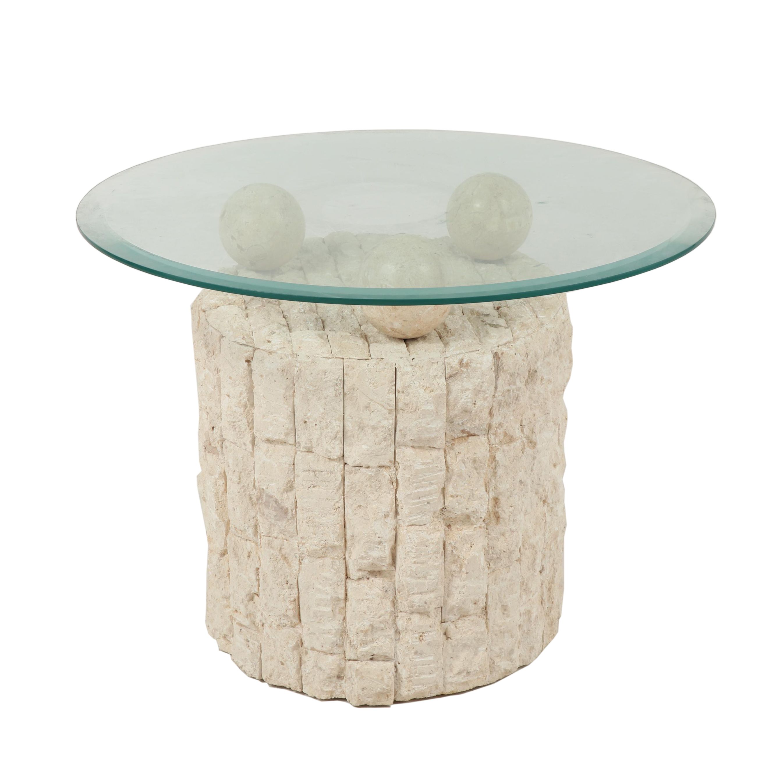 White Stone Side Tables With One Glass Top Ebth