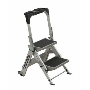 Louisville aluminum step stool ladder 2 step 225 lb capacity 185w x 235 spread x 385h silver. 2 step stool gimify folding step ladder steel stepladders upgraded version non slip sturdy steps wide pedal with comfortable hand grip for home kitchen garden office 330 lbs 49 out of 5 stars 37 4999 49. The gorilla ladders 2 step compact steel step stool the gorilla ladders 2 step compact steel step stool is lightweight and folds up extremely thin for easy storage anywhere in your home office or garage.