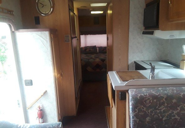 1996 georgie boy swinger m 28qb. Full kitchen with 3 burner stove convmicro and norcold fridge.
