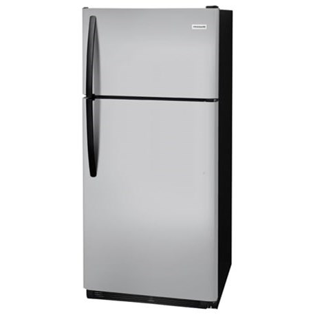 The frigidaire 183 cu. Top freezer refrigerator monochromatic stainless steel reversible door swing.