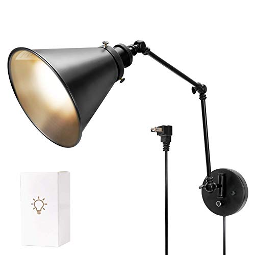 Dimmable Swing Arm Wall Lamp Plug In Cord Industrial Wall Sconce